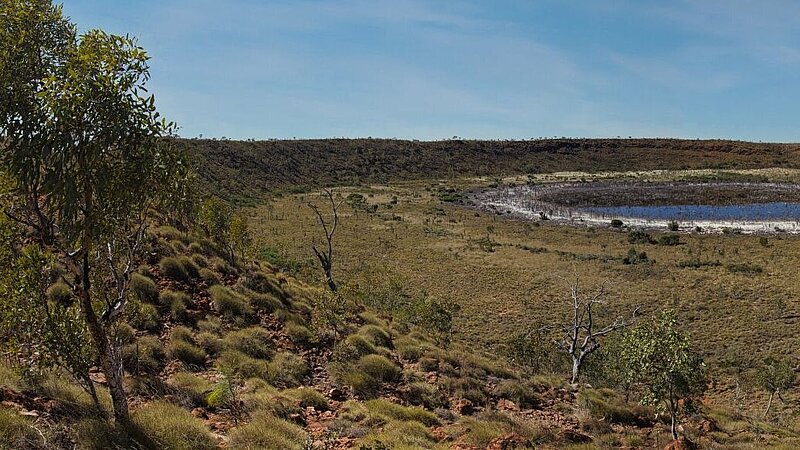 Der Wolfe-Creek-Krater ist der zweitgrößte Meteoritenkrater weltweit, in dem Überreste eines Meteoriten gefunden wurden. Für die Djaru-Aborigines trägt er den Namen „Kandimalal“ – ein Ort, an dem in ihrer Traumzeit-Erzählung eine mächtige Regenbogenschlange aus dem Boden aufstieg.